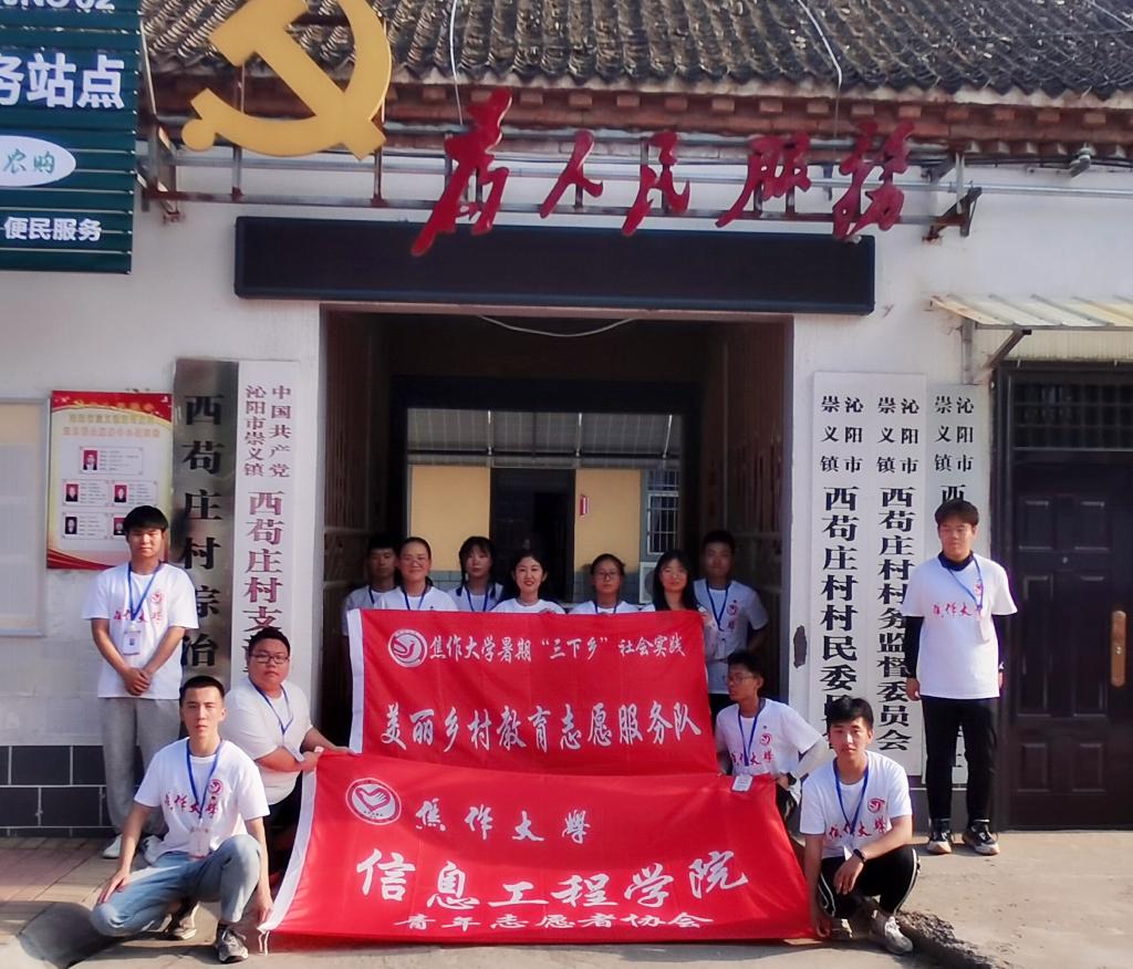 7月8日—7月14日,太阳成集团122ccvip12名员工在指导老师郑笑晗的带领下组成三下乡社会实践美丽乡村教育志愿服务团,以“永远跟党走,奋进新时代”为主题,赴沁阳市崇义镇西苟庄村展开实践考察活动。